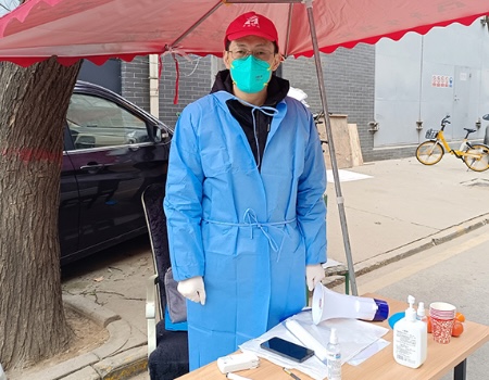 年过花甲的老台胞谷宁秋主动报名参加社区人员信息登记、防疫宣传、秩序维持、环境消杀、巡查值守等工作。由于身处管控小区,防疫压力大,谷宁秋需要耐心细致地做好各类人员的思想工作和防控政策宣传,尽全力保障好小区住户的健康与安全。她说:“我以前在医院工作,穿了三十多年白大褂。虽然早已退休,但疫情当前,作为一名老医务工作者,更要主动担当起来,为我们的家人乡亲,为我们的城市出一份力!”