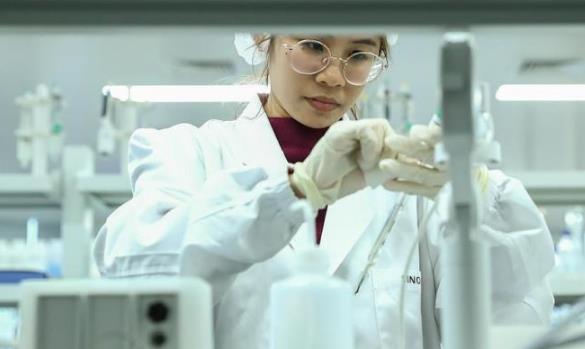 2020年12月23日,科兴中维工作人员在新冠病毒灭活疫苗质检实验室内进行检验工作。新华社记者 张玉薇 摄