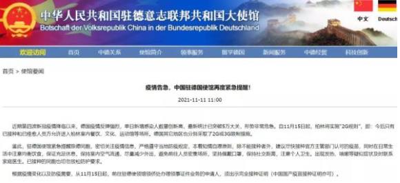 针对德国新冠疫情连日来急遽反弹,持续告急的形势,中国驻德国大使馆11日发布紧急提醒。