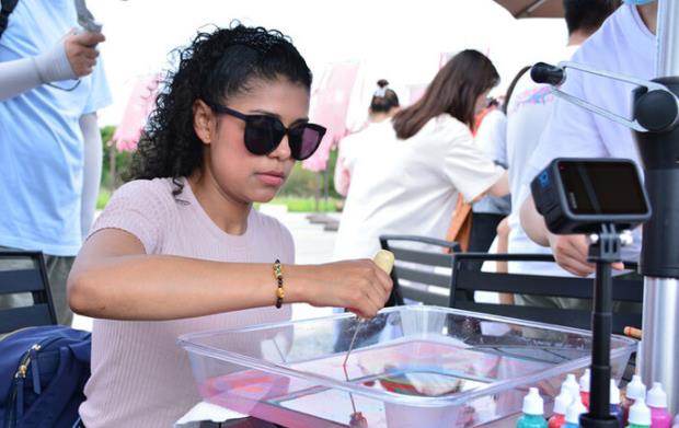 危地马拉博主塞莉娅体验湿拓画 摄影 王智