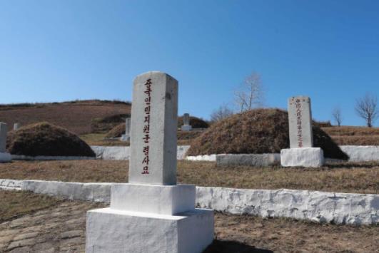 这是10月23日在朝鲜咸镜南道西北部长津湖畔拍摄的长津邑中国人民志愿军烈士合葬墓地。新华社记者 江亚平 摄