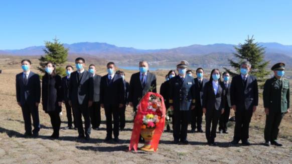 23日上午,中国驻朝鲜大使李进军带领使馆部分外交官驱车10多个小时,跋山涉水,来到咸镜南道西北部长津湖畔的长津邑中国人民志愿军烈士合葬墓地,祭拜在71年前那场著名的长津湖战役中牺牲的中国人民志愿军烈士。