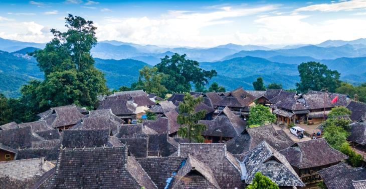 “普洱景迈山古茶林文化景观”位于云南省普洱市澜沧拉祜族自治县,遗产区包括5片规模宏大、保存完好的古茶林,分布其中的9个古村寨,以及古茶林之间的3片分隔防护林。遗产区居住着傣族、布朗族、哈尼族、佤族、汉族等。千百年来,世居民族与茶共生,人与自然和谐共处。